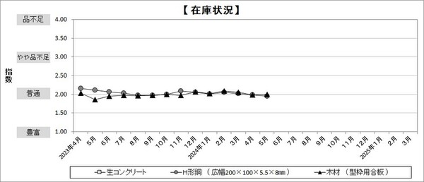 ・生コンクリート、H形鋼、木材とも、“均衡”となっている。