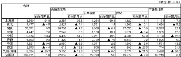 国土交通省は、建設工事受注高の統計資料を毎月発表しています。
