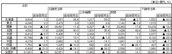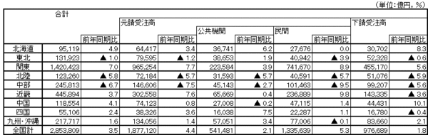国土交通省は、建設工事受注高の統計資料を毎月発表しています。