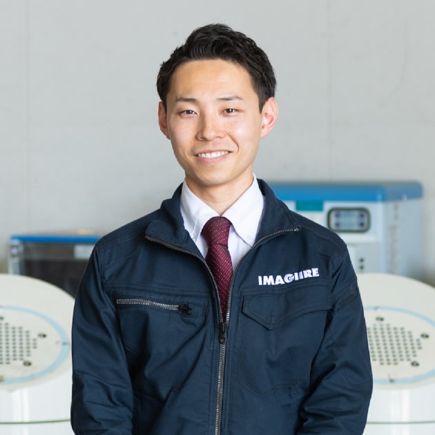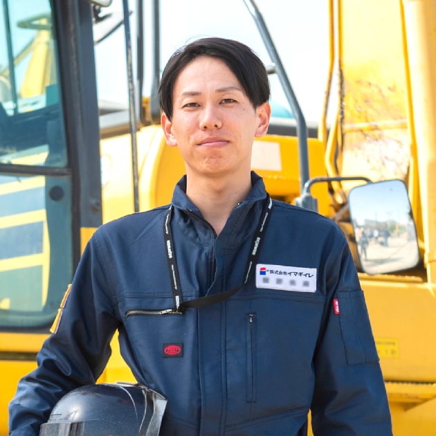 小さい頃から車や機械が好きで、ラジコンがどういう仕組みで動いているのか知りたくて、バラバラにしたこともありましたね。車か機械の仕事につきたくて、工業高校に通っていたときは部活で鉄パイプの車をつくっていました。専門学校で本格的に自動車を学んで、レースカーの整備やメカニックもやっていましたが、いざ就職活動となると自動車やレースカーを専門にする会社ではなく、大型の建設機械から小型のものまでいろいろな機械をあつかうイマギイレに目を奪われました。根っからの機械好きなので、車だけを相手にするのはもったいないと思ってしまったんです(笑)。いまはいろいろな機械に触れているのでとても満足しています。一般の車とはパーツの大きさも重さもまったく違いますし、油圧機械の凄さにも驚かされてばかり!専門学校で勉強することのなかったものもたくさんあるので、いろいろと学びながら仕事をしています。