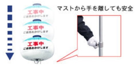 ・独自開発のエアブレーキマストは、操作中うっかり手を放してもバルーン部がゆっくりと降下し安全です。